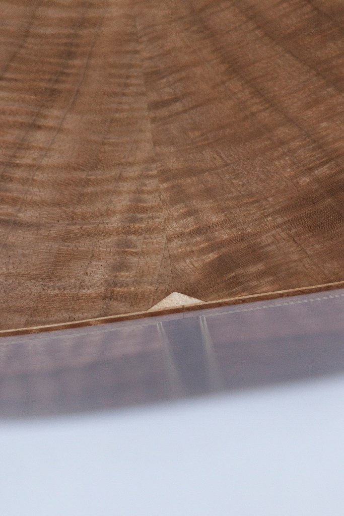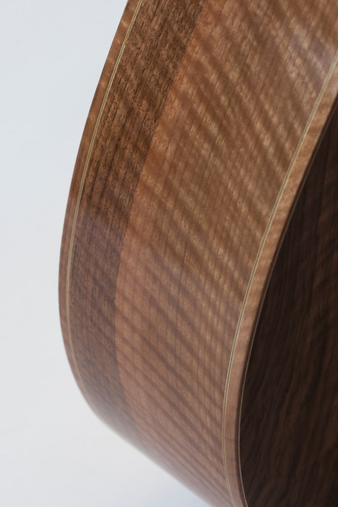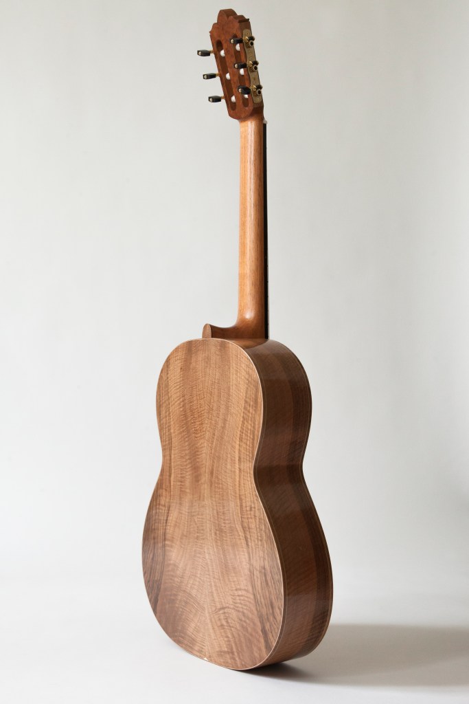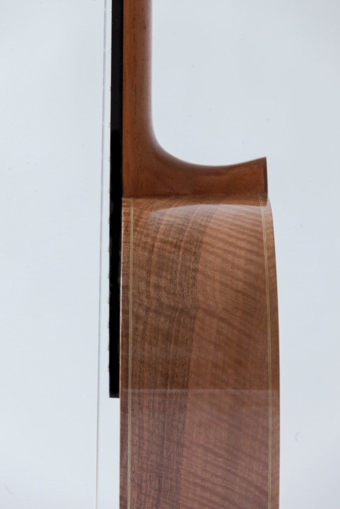 Fond et éclisses en noyer (de nombreux bois disponible, à discuter en fonction des préférences esthétiques et acoustiques du musicien)